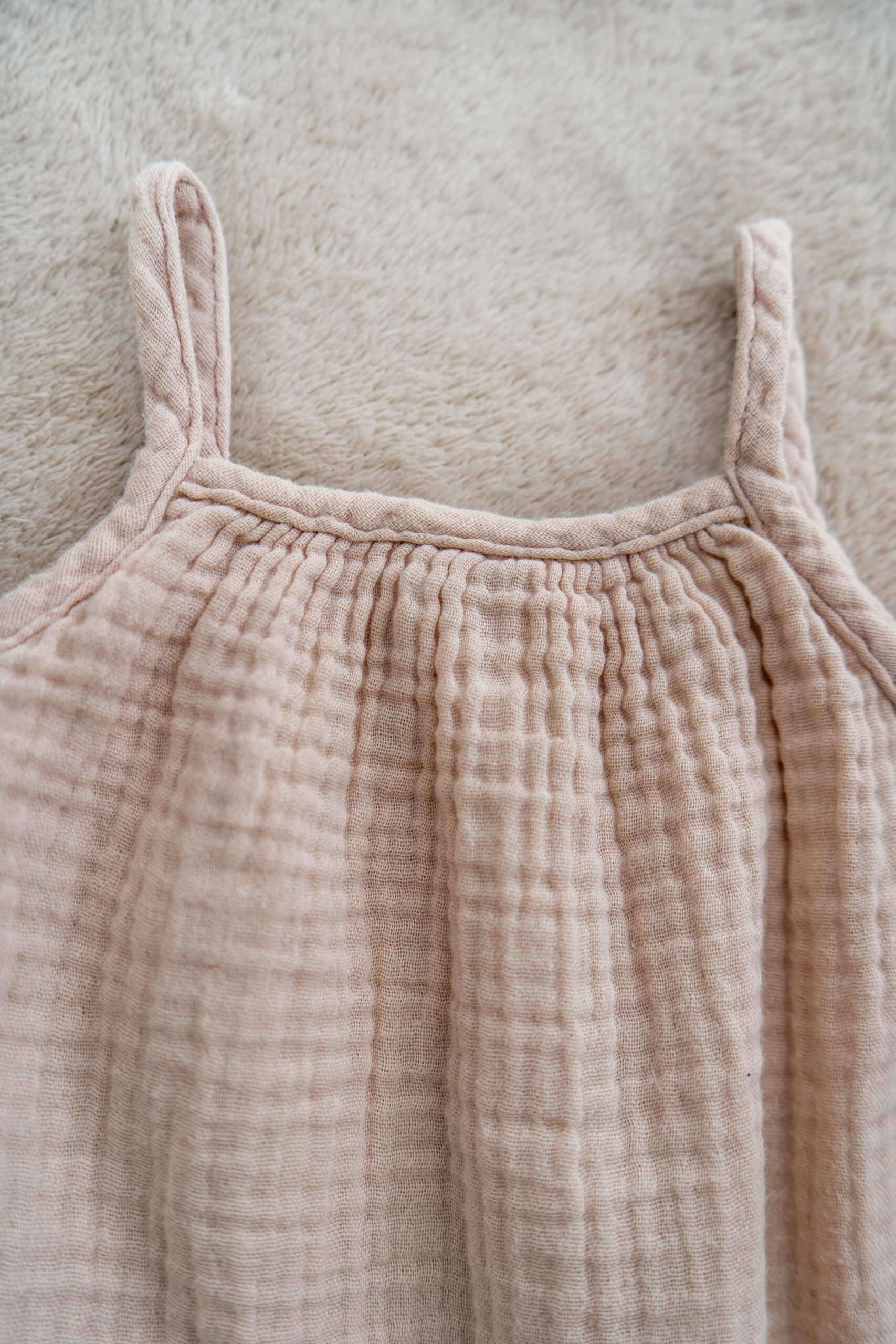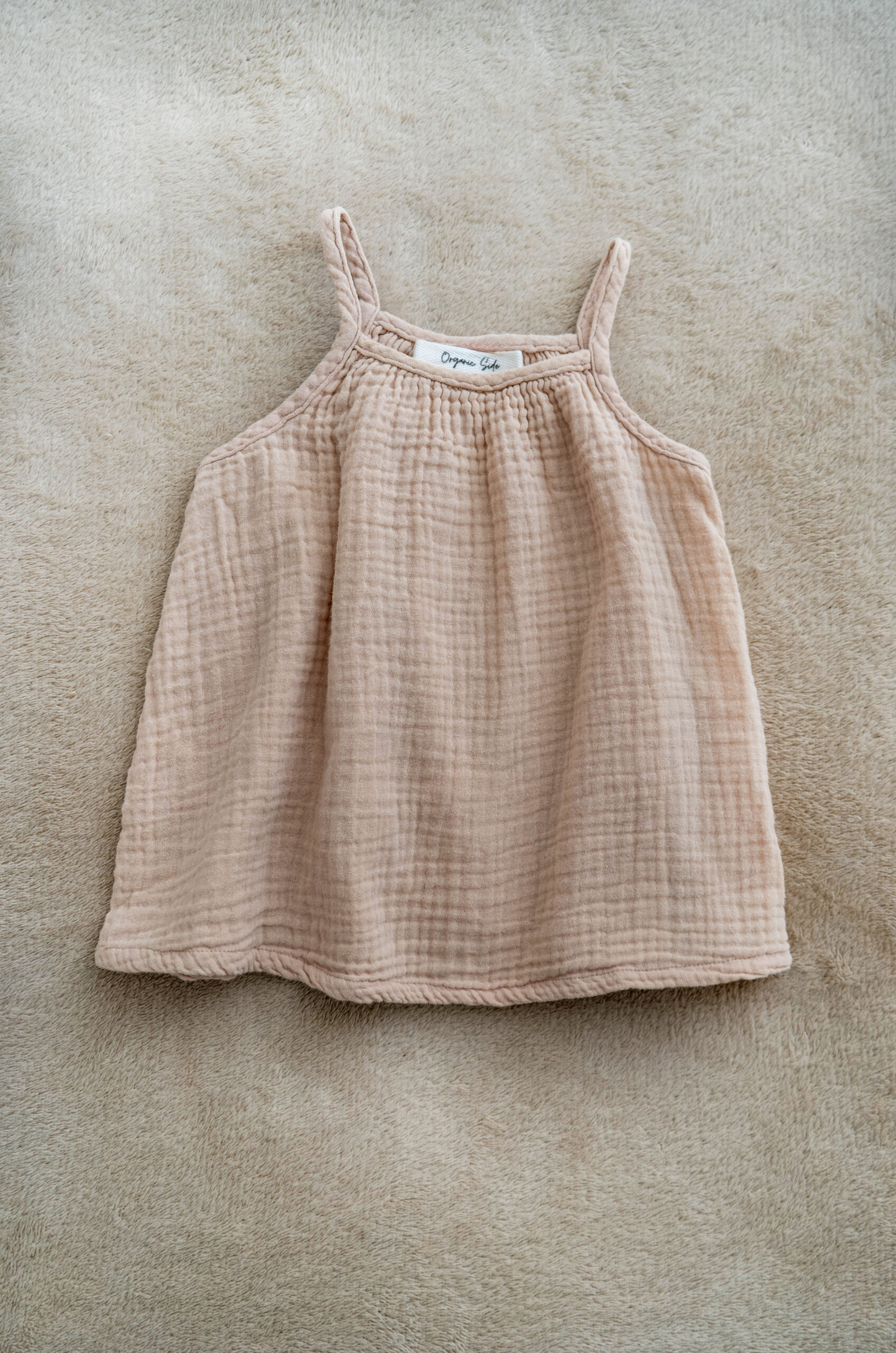 Delicate and delightfully airy, this muslin girls dress is crafted with breathable double-gauze cotton that keeps your child comfy through all her summer adventures. The minimalist design with slim straps and a flowy silhouette allows easy movement and timeless charm, perfect for anything from beach walks to family outings.