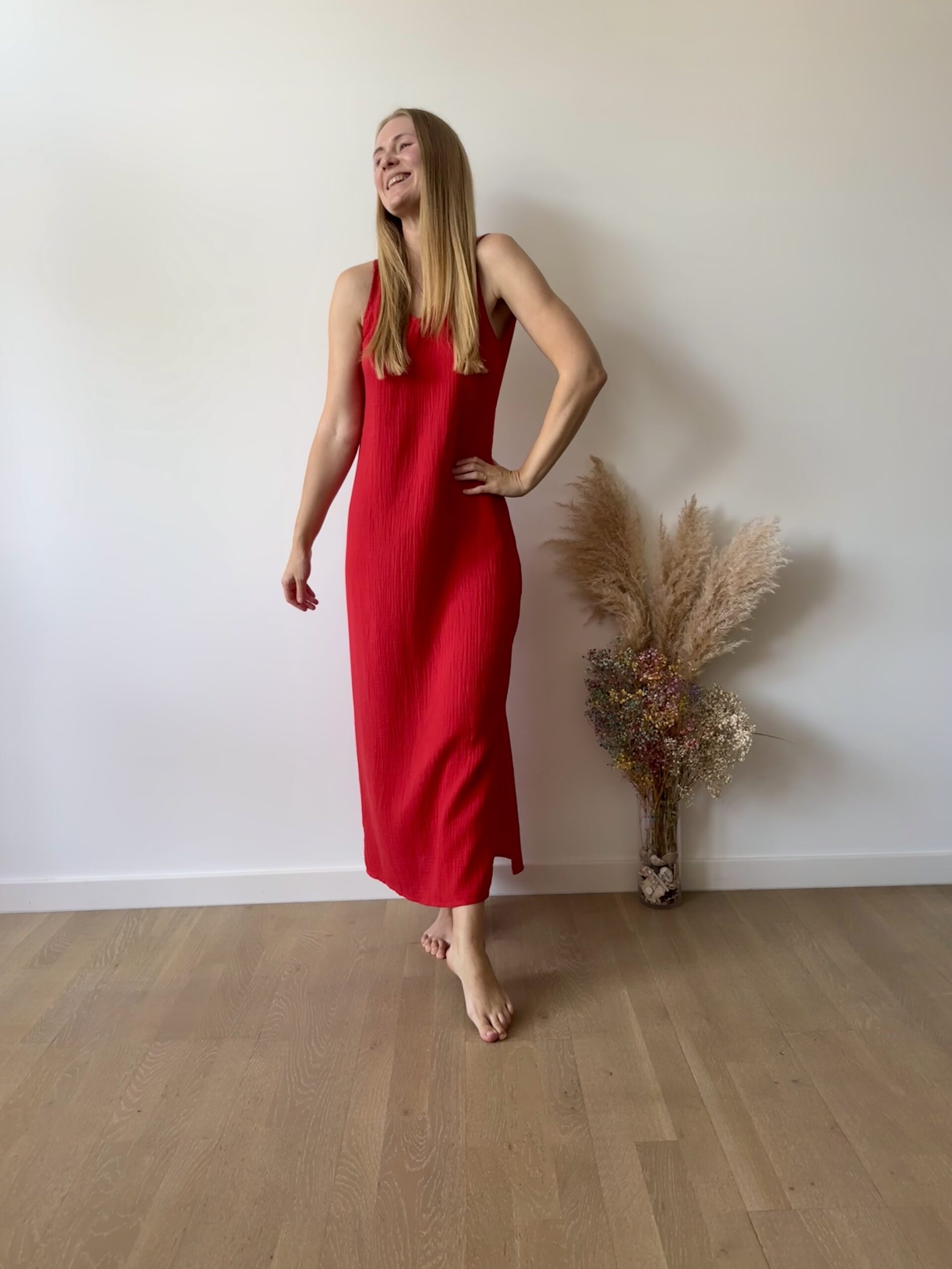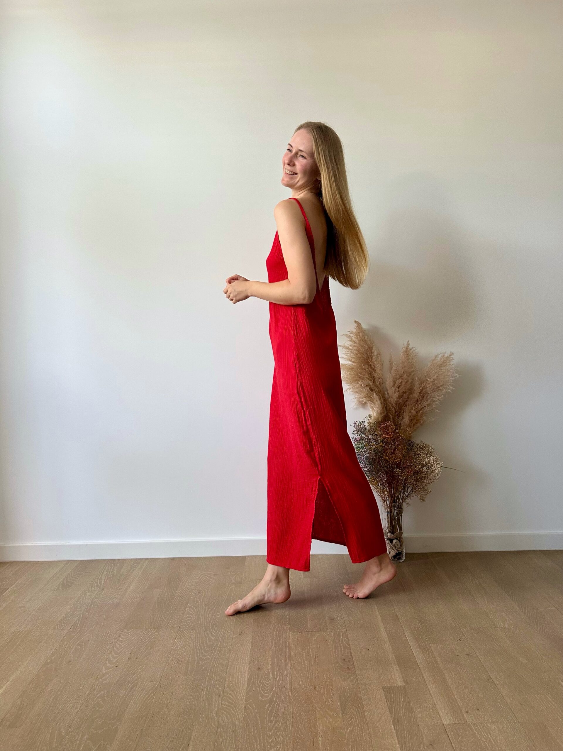 From its vibrant color to its gentle drape, this muslin dress brings together everything we love about natural beauty, sustainable fashion, and timeless comfort. Whether you’re dressing up or down, it’s a piece that speaks softly but stands out boldly.